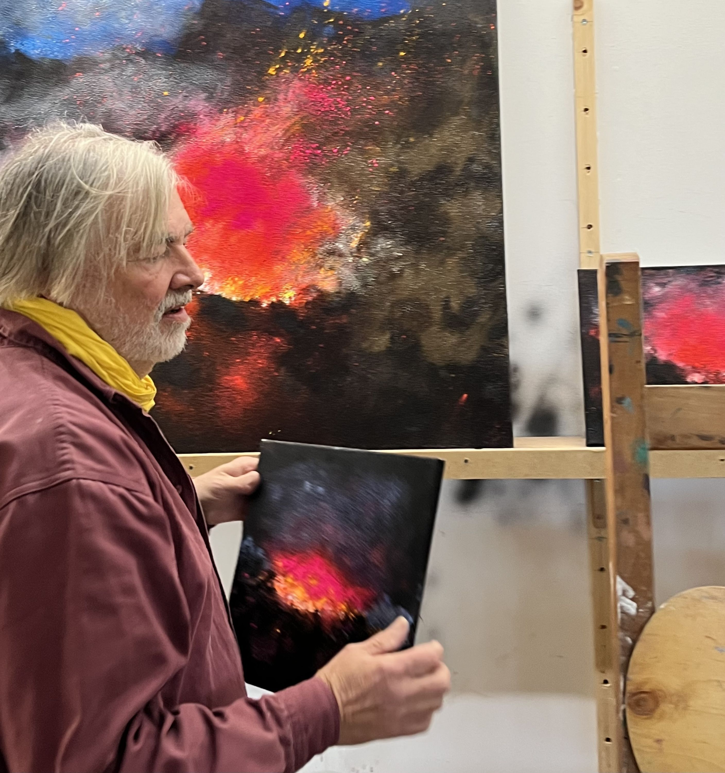 As a witness to a fire in the valley below my house, I painted the memory of that fascinating spectacle, despite the fear of imminent danger.